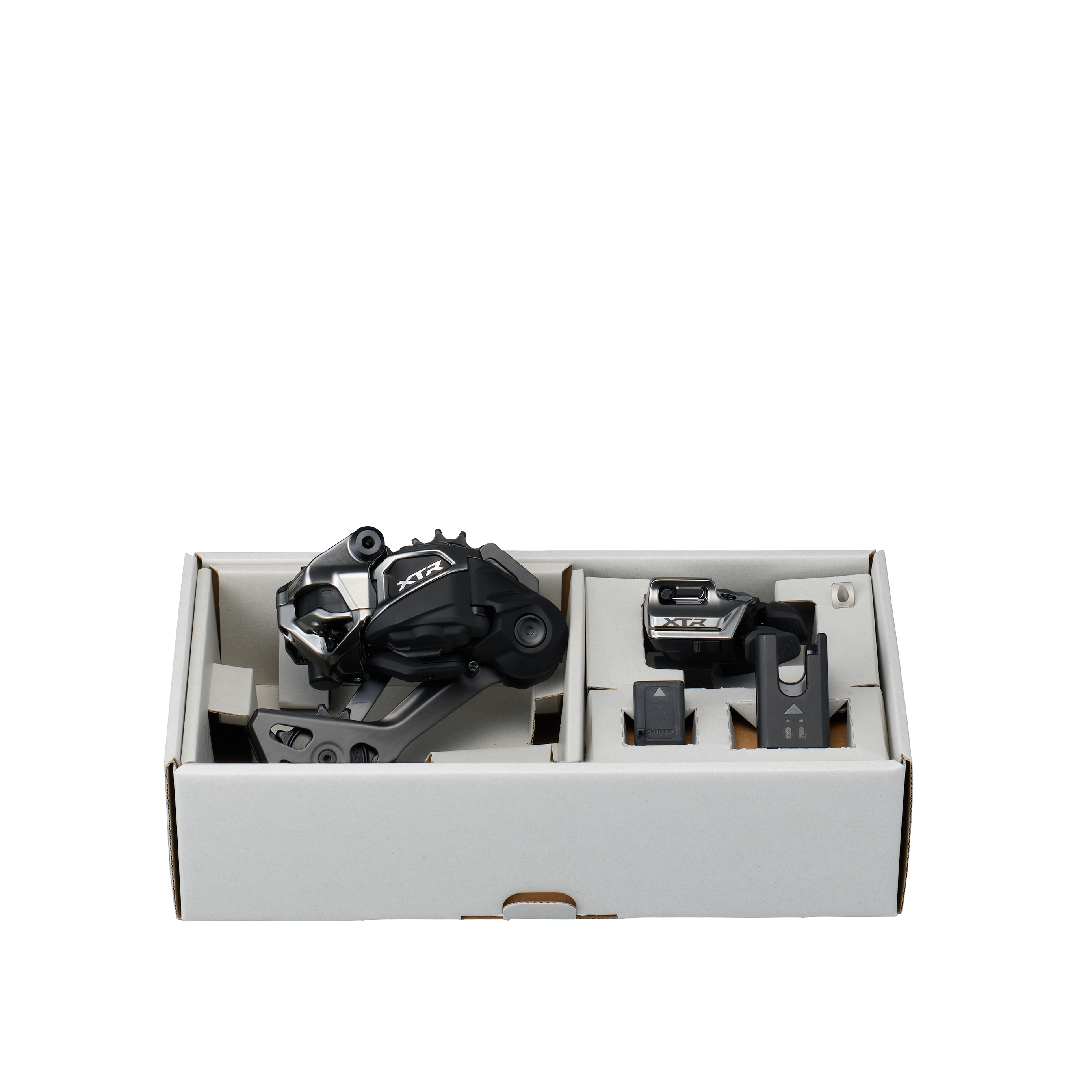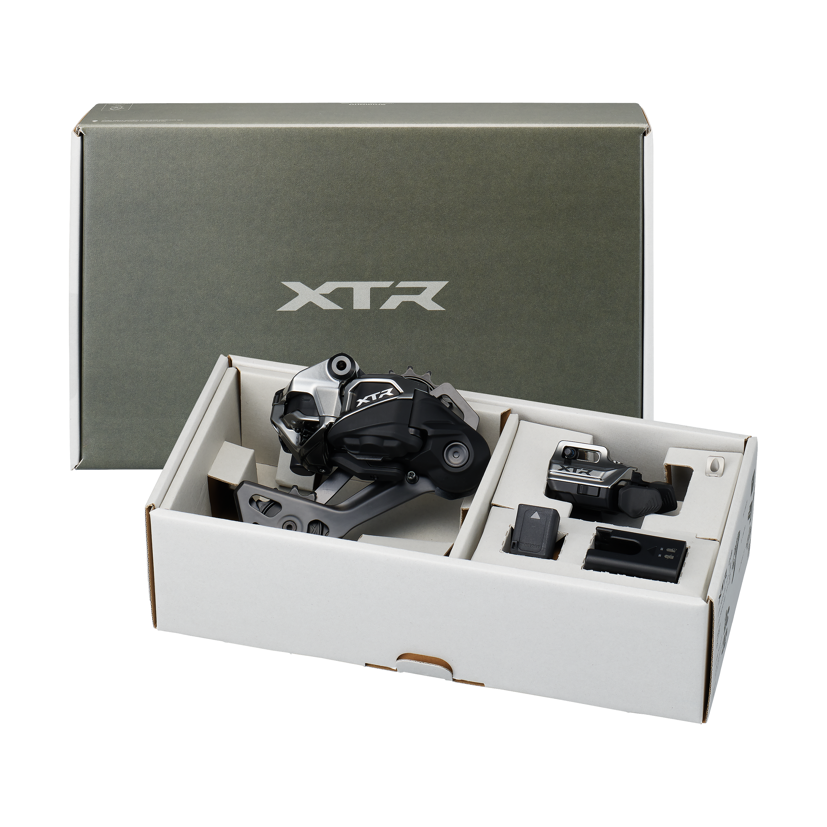 Robust. Resilient. Ready for Anything - The Shimano XTR Di2 12-Speed Upgrade Kit provides riders with the pinnacle of wireless MTB shifting technology. The kit features an all-new XTR M9250 Di2 wireless rear derailleur that's optimized for impact survivability to make it the choice for both Shimano's top enduro athletes and weight-conscious XC racers alike. With built-in Automatic Impact Recovery, an impact-deflecting shape, and simple covered-pulley solutions, this derailleur stands up to harsh trail impacts and still retains its lightning-quick wireless shifting speed and top-level performance. The XTR M9250 Shimano Rapid ES shifter feels instantly natural out of the box, but can also be molded to fit any hand, thanks to its familiar fit and evolved adjustability design. Multiple shift modes, like hold-down multi-shift, tactile click-through double shift, or locked-out single shift, deliver precision, while a tunable third button allows for additional system tuning or third-party connection. Kit includes an XTR M9250 Di2 wireless derailleur, XTR SW-M9250 Rapid ES wireless shifter, BT-DN320 Battery, EC-DN100 Charger, and Quick Link.